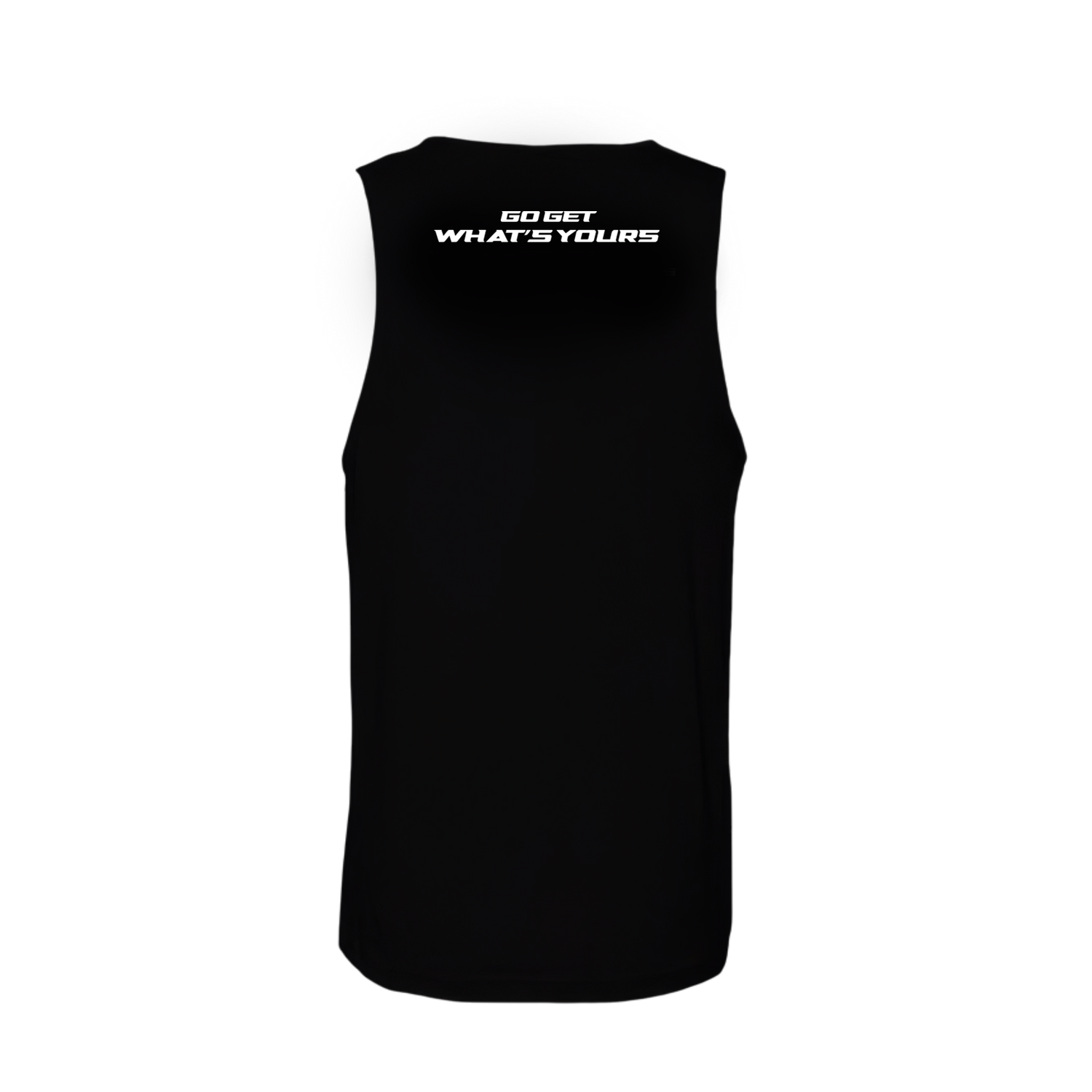 Muscle tank featuring the motivational mark on the back, “Go Get What’s Yours™”, a registered mark representing Supra Human.